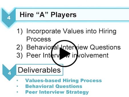 The Values Blueprint begins the process of incorporating values into your operations. Once established, values form the basis for hiring, rewards and accountability, decision making, and customer branding.